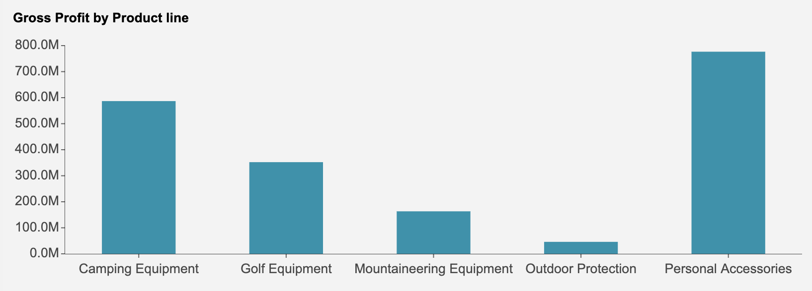 The column chart displays Gross Profit by Product Line, where the category axis contains values such as: