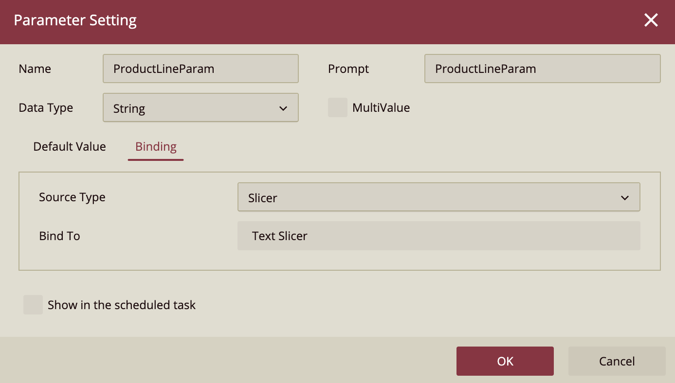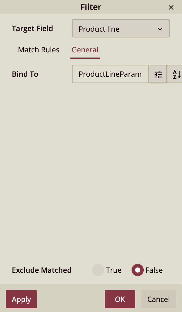 Select the parameter (ProductLineParam) as the filter value.