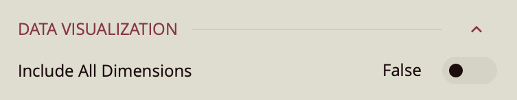 Include All Dimensions – When enabled, ensures that all available dimension values are included in the visualization, even if they have no corresponding measure values. This can help maintain consistent category representation across views. Default: Off.