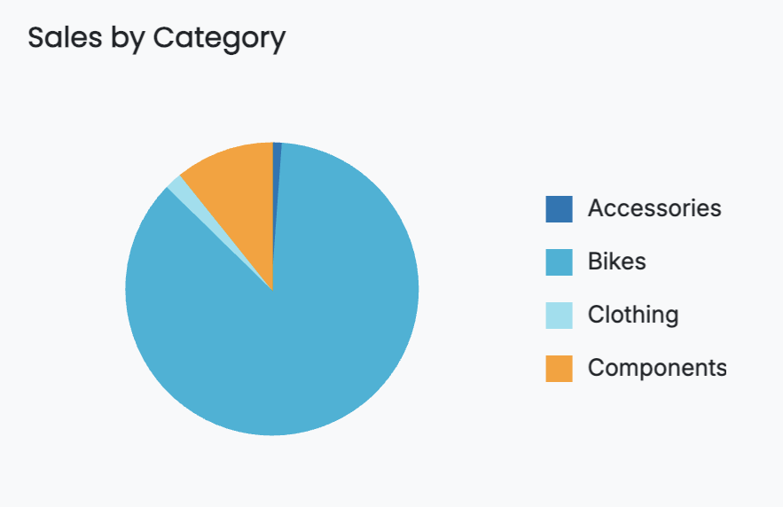 Pie charts and their variants use numerical values bound to the Values data binding slot and categorical values bound to the Legend (Series) data binding slot. In these charts, the Legend (Series) represents the primary grouping.