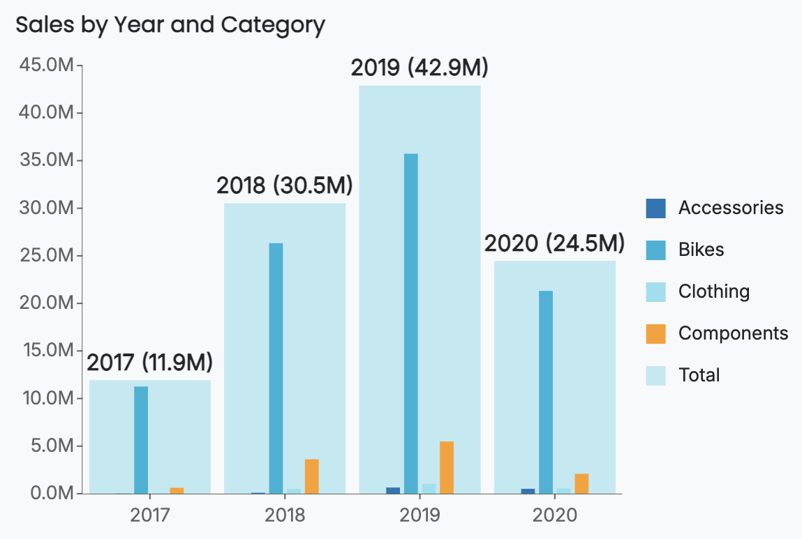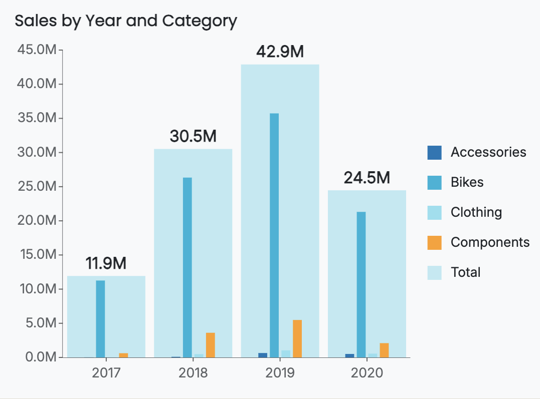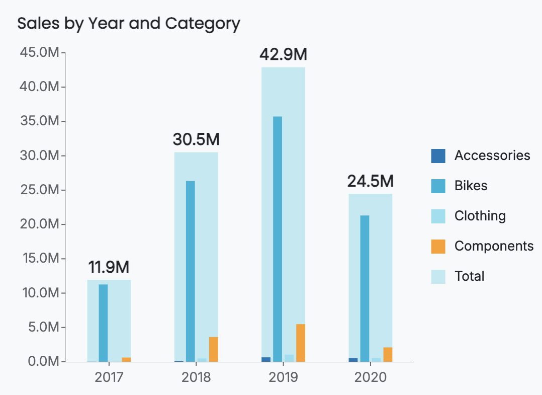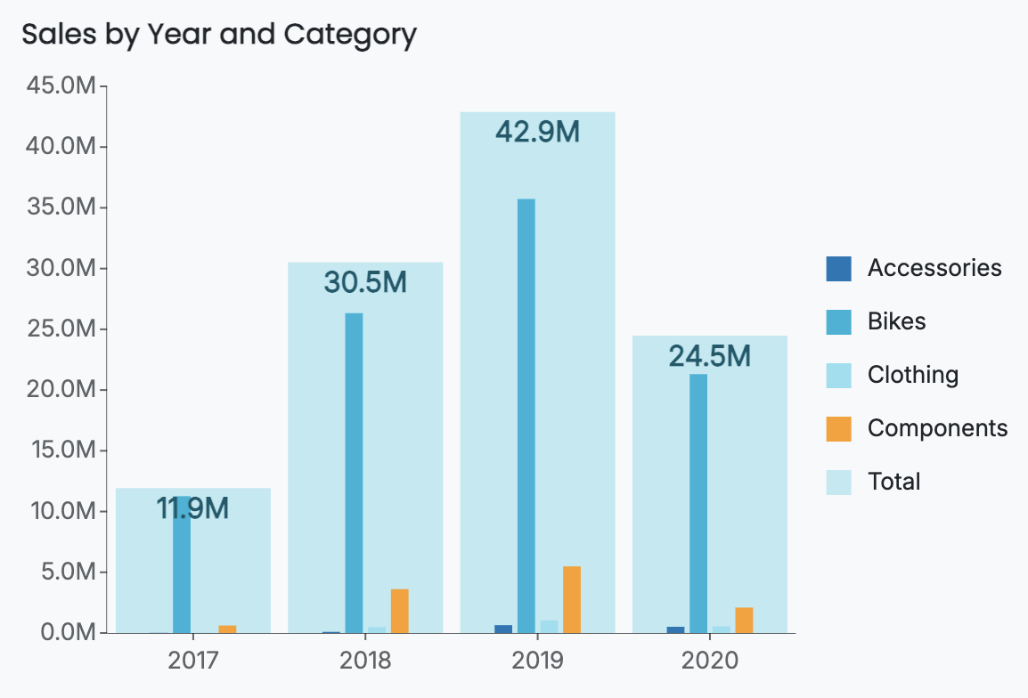 For example, the grouped column chart below shows the series total with the opacity set to 100%.