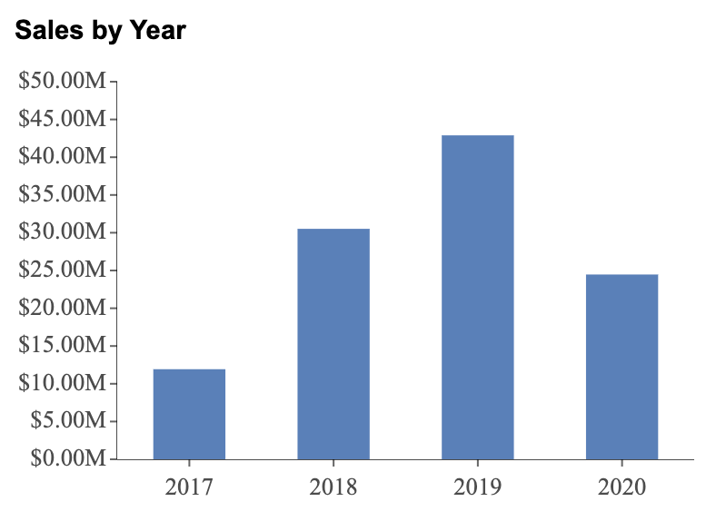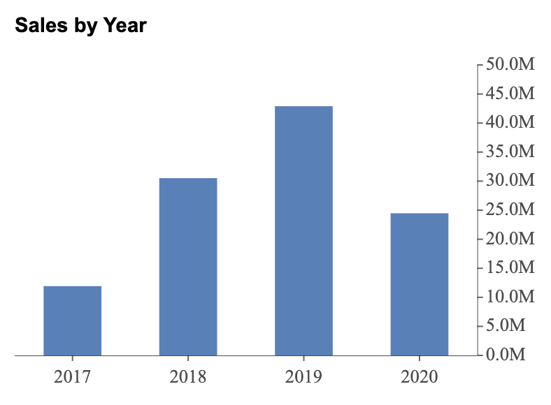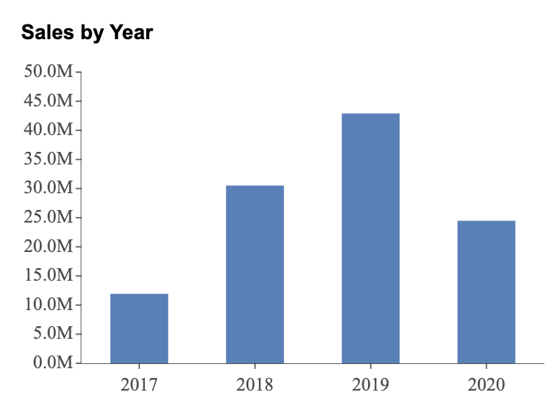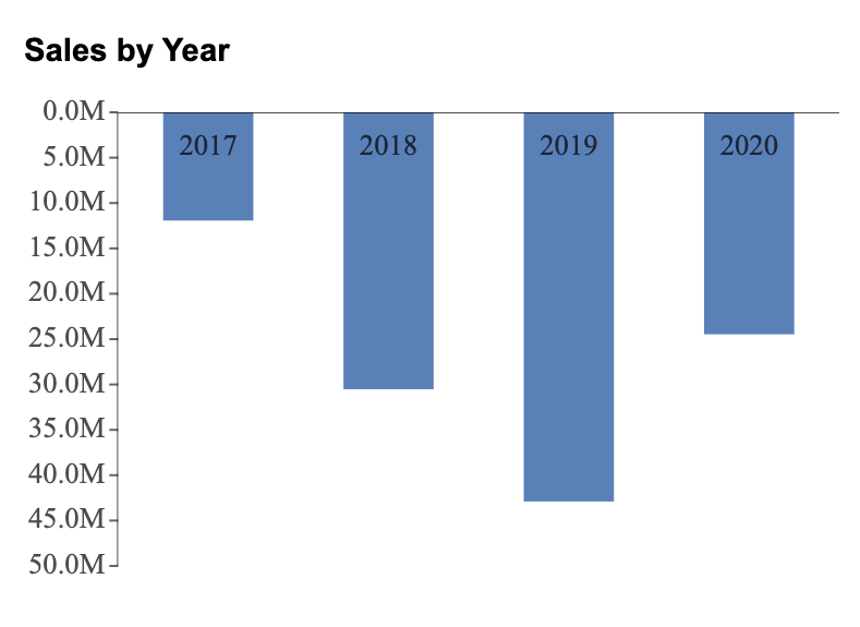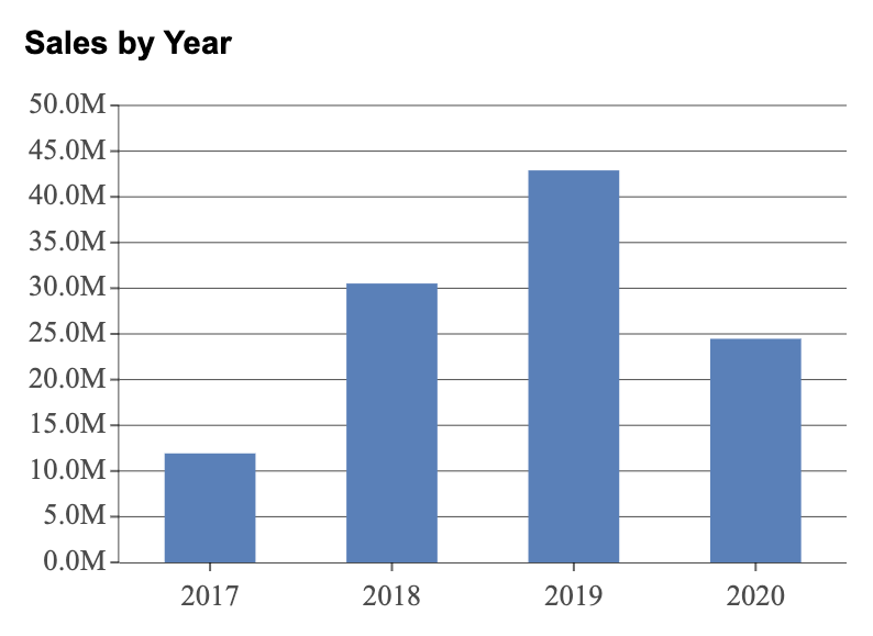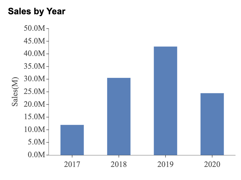 For example, this chart has a Max Value of 50,000,000 (50M), a Min Value of 0, and an Interval of 5,000,000 (5M).