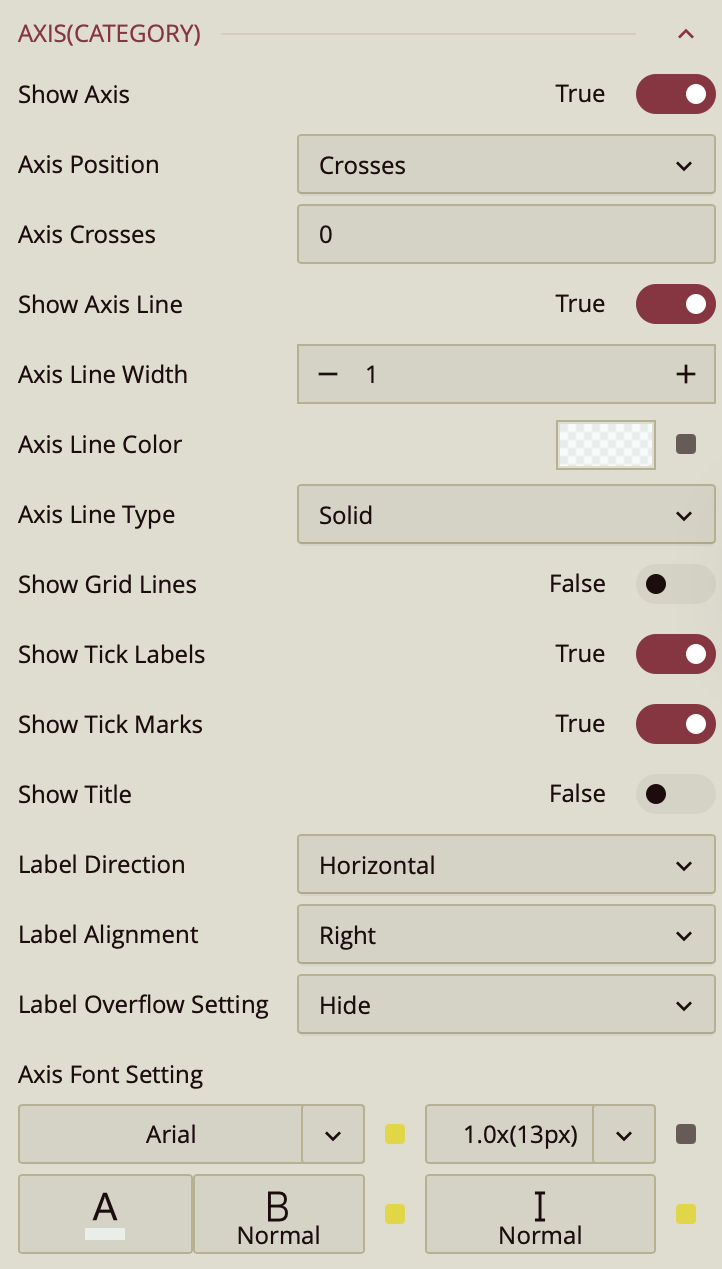Axis Font Settings: Customize the axis text by choosing the font family, size, color, weight, and style.