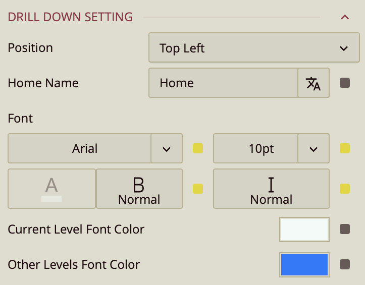 Current Level Font Color – Sets the color for the label of the currently active drill-down level, helping it stand out from other levels.