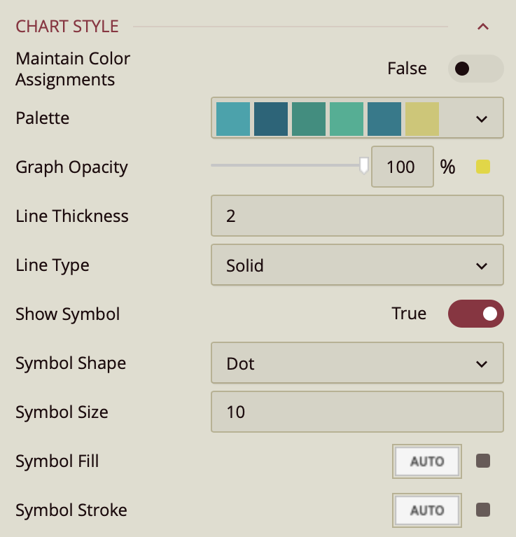 Show Symbol – Toggle item. Shows or hides symbols at each data point. True by default.