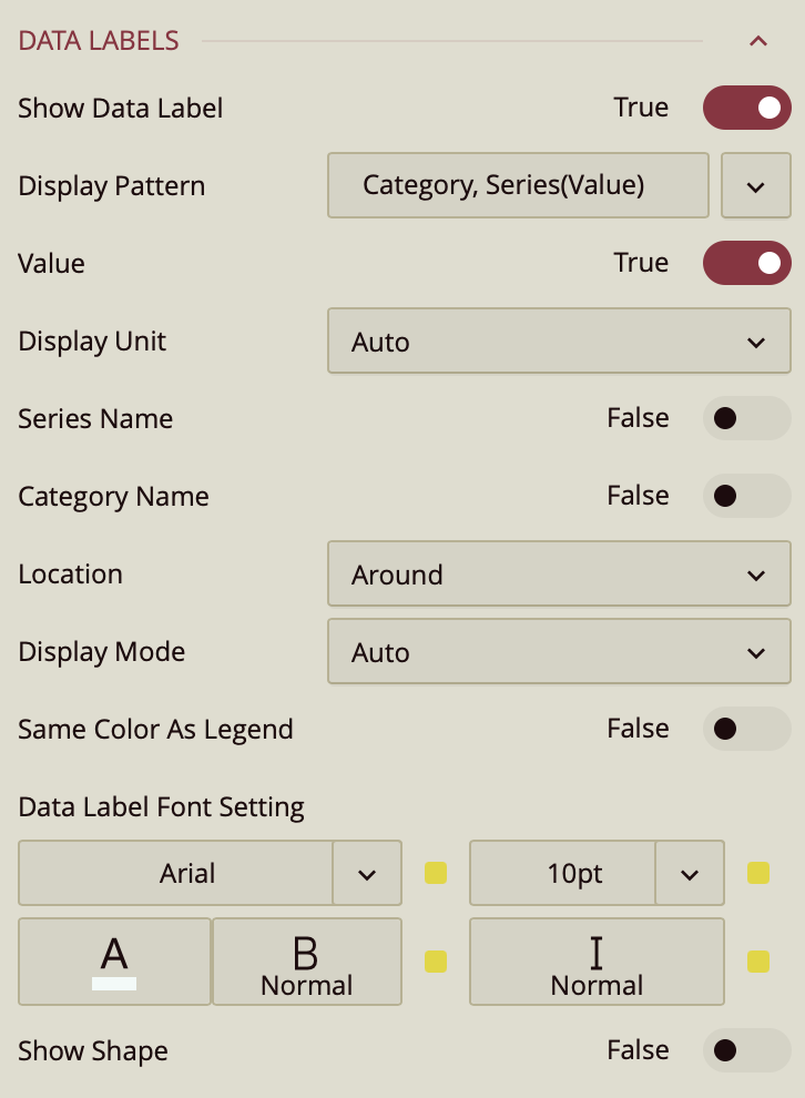 Show Data Label: Toggle this on to enable data labels on the chart.
