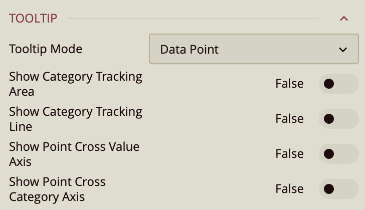 Show Category Tracking Area – Highlights the entire area of the chart that corresponds to the hovered category, helping visually connect related data points.
