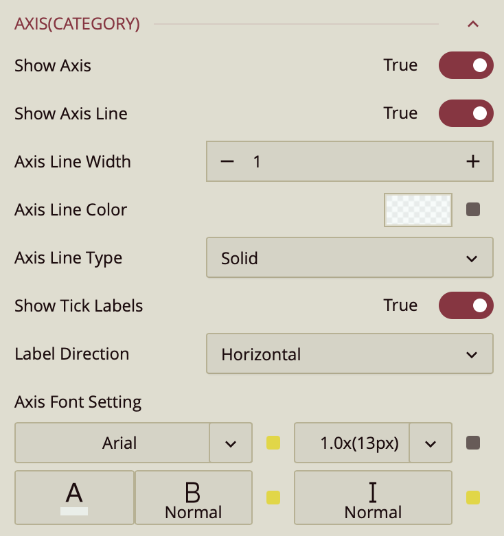 Show Axis – Toggle item. Displays or hides the category axis. True by default.