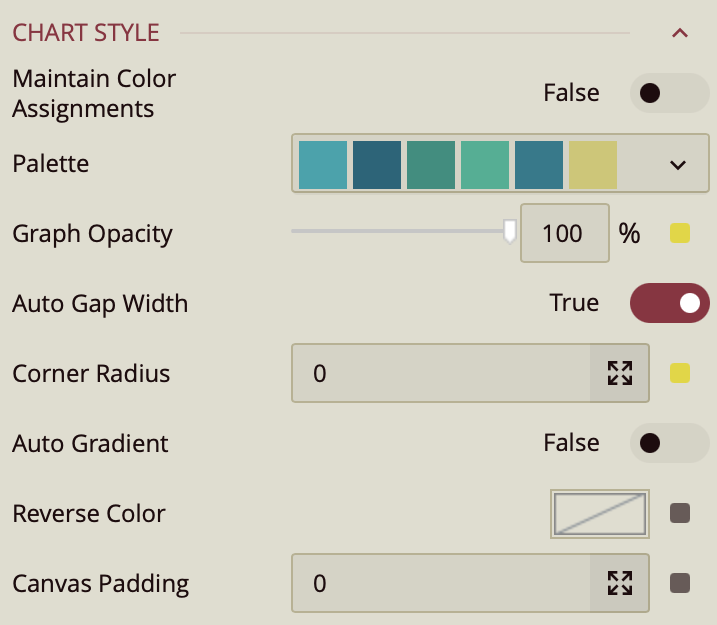 Auto Gap Width: Enabled by default. This controls the spacing between bars. To manually define the gap width, switch this setting to False.