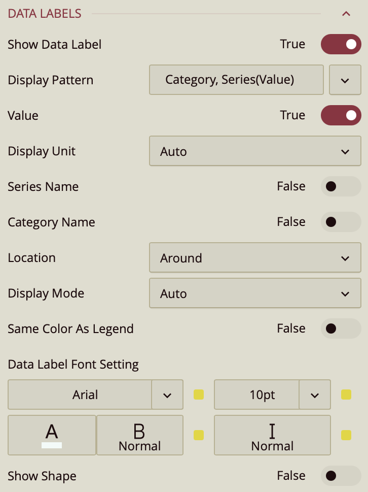 Show Data Label: Toggle this on to enable data labels on the chart.