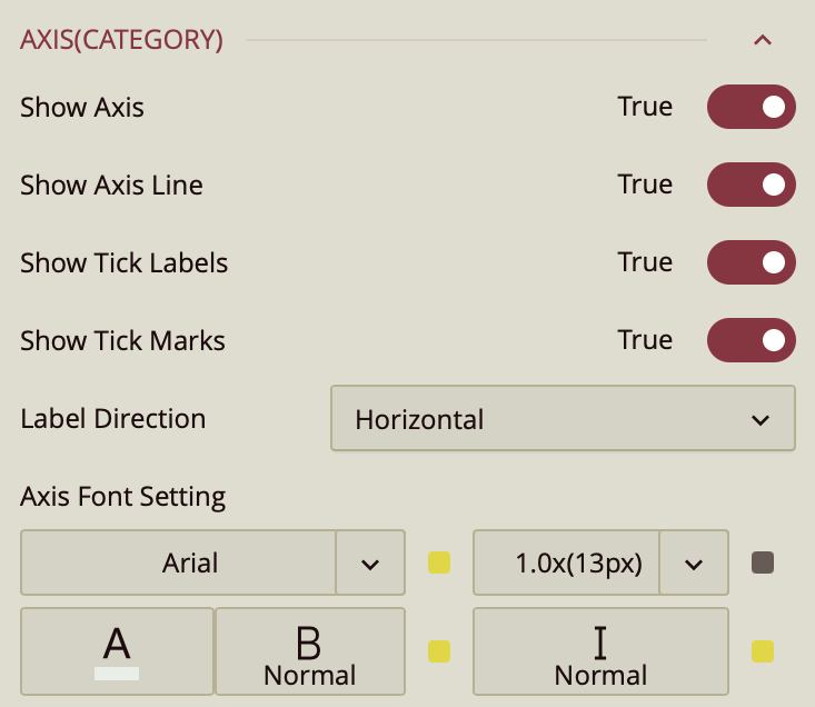 Show Axis – Toggles the display of the axis in the chart. When off, all axis elements, including labels, lines, and ticks, are hidden.