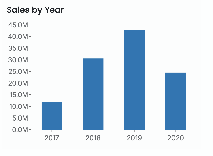 For example, if you bind Sales Amount to the Values slot and Year to the Axis (Category) slot of a column chart, the scenario title is automatically generated as “Sum of Sales Amount by Year.” You can edit this text at any time—for instance, simplifying it to “Sales by Year.”
