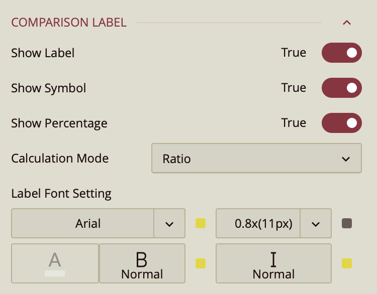 Label Font Settings – Configures font family, size, color, weight, and style of the comparison label.