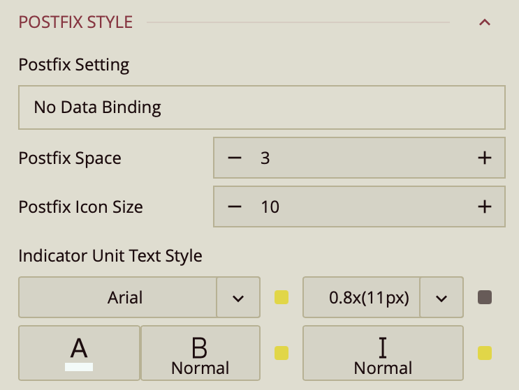 Indicator Unit Text Style – Customize the font, size, color, and style of the postfix text.
