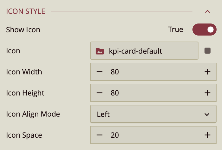 Show Icon – Toggle to True to display an icon on the KPI card, or False to hide it.