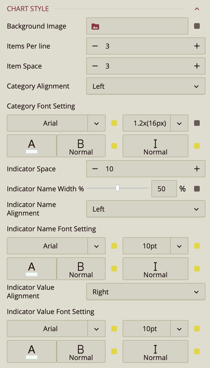 Indicator Value Font Setting – Customize the font, size, color, weight, and style for indicator values.