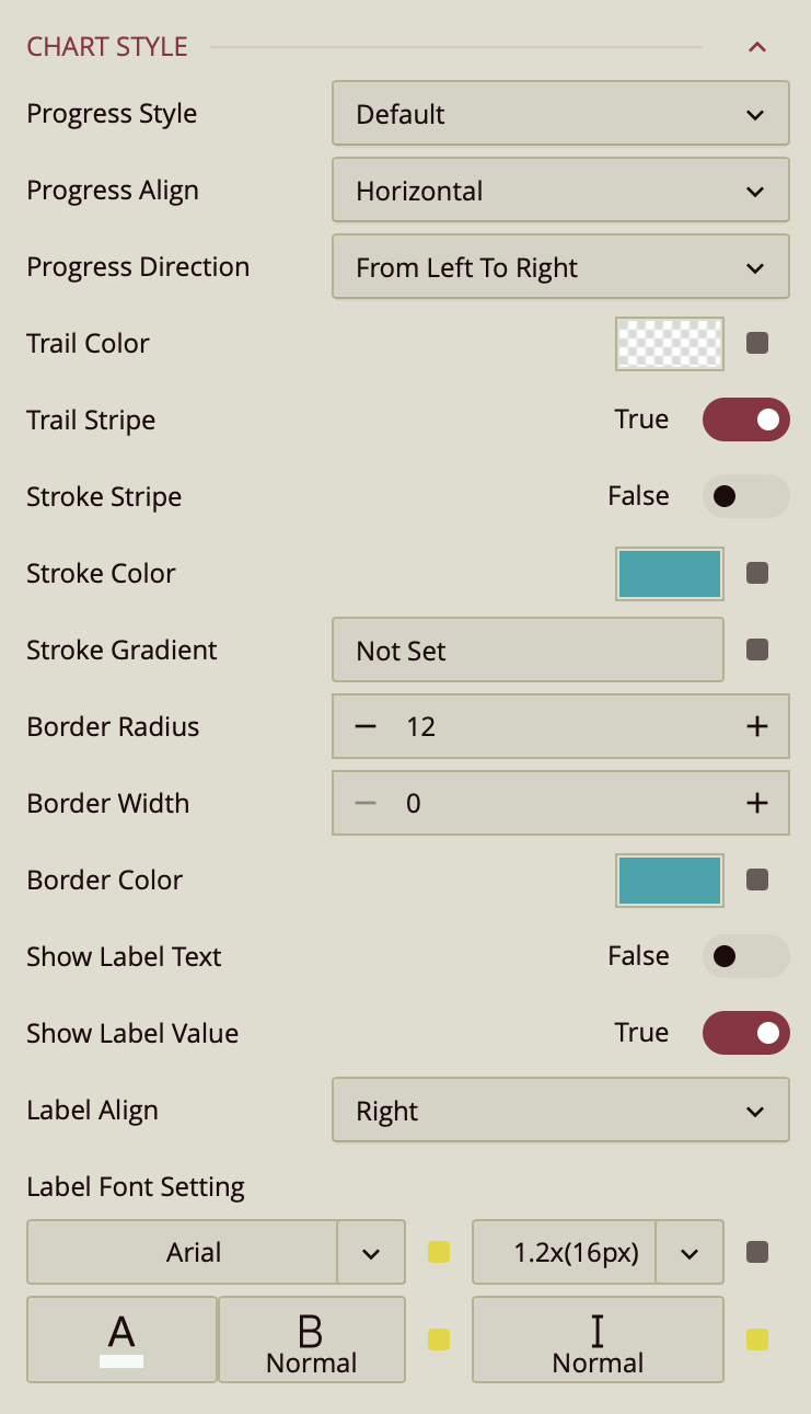 Show Label Value – Toggle to False to hide numeric values on the progress bar.