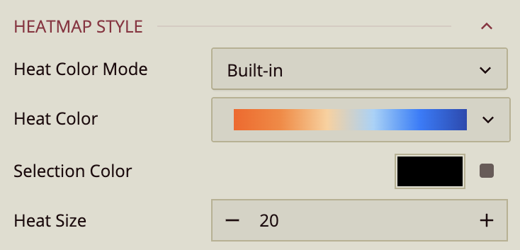 Heat Size Control the heat radius (0–100). Larger numbers create bigger radii.