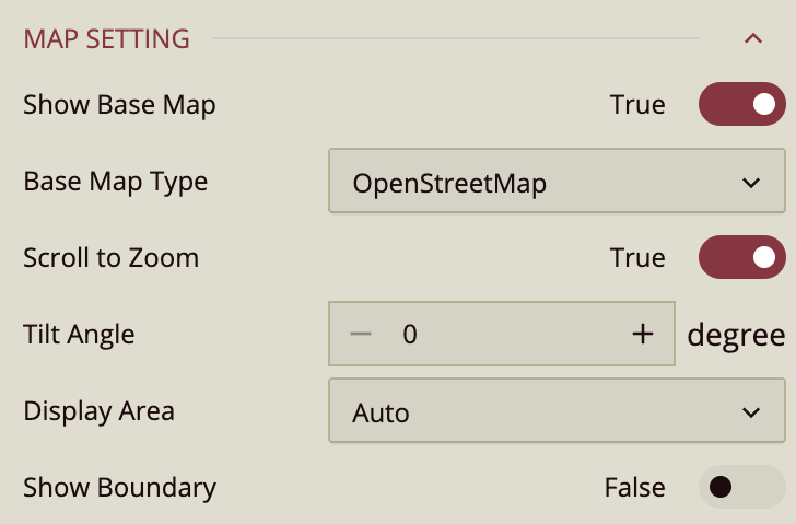 Show Base Map – Enable or disable the reference map. Wyn Enterprise uses Mapbox GIS as a base map. Default: True.