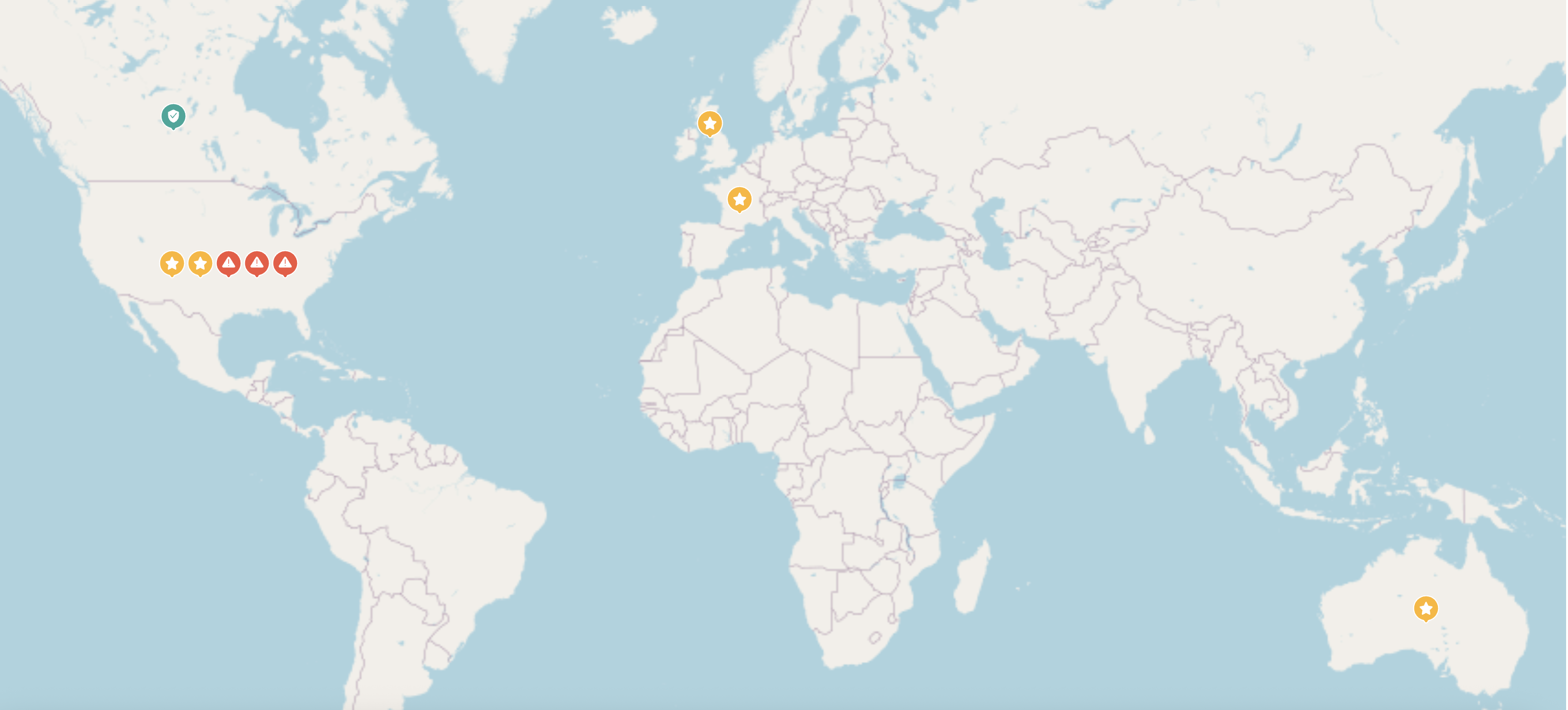 By Area – Displays an area selector. Clicking a symbol adjusts the map boundary to that bubble.