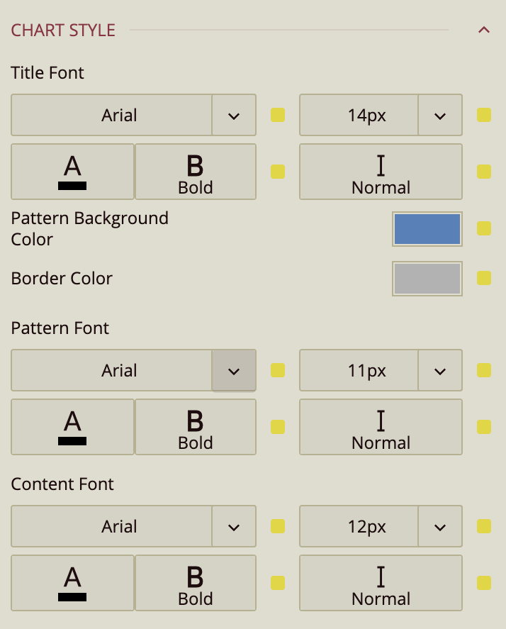 Pattern Font – Sets the font family, size, color, weight, and style for the text describing patterns in the chart.