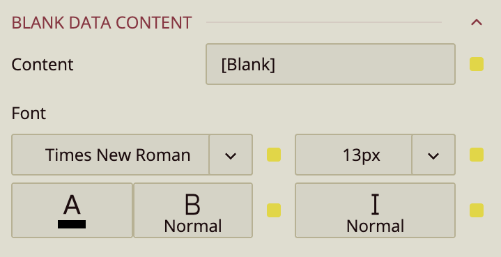 Font – Configures the font family, size, weight, and style of the blank data text.