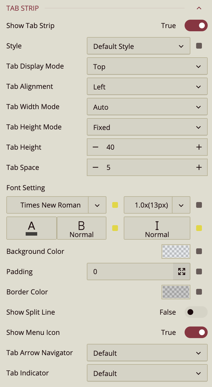 Font Setting – Configure the font family, size, color, weight, and style of tab text.