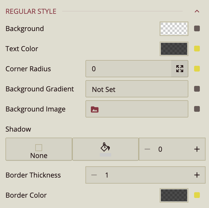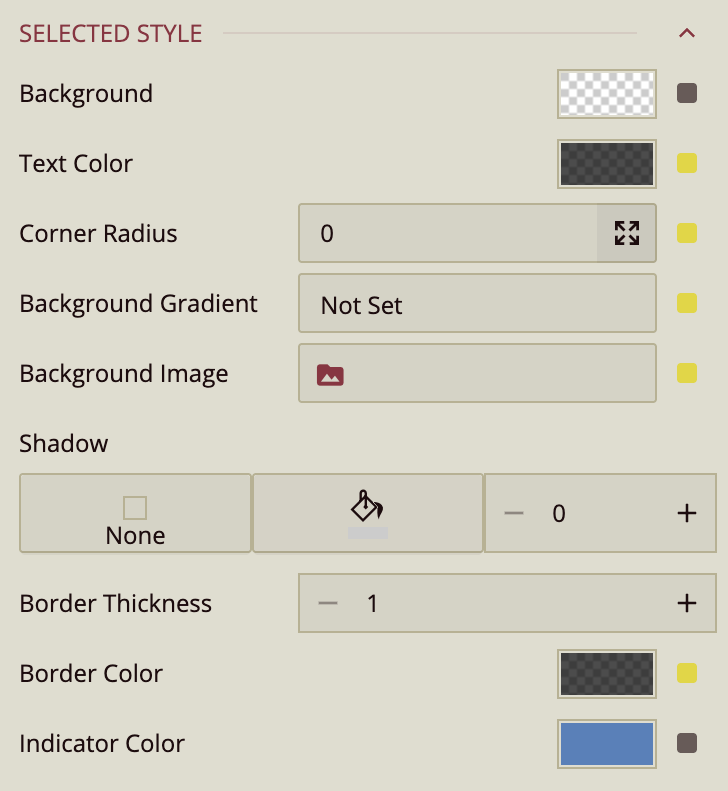 Shadow – Configure shadows for the selected tab, including type, color, and thickness.