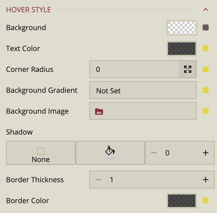 Shadow – Configure shadows for hovered tabs, including type, color, and thickness.