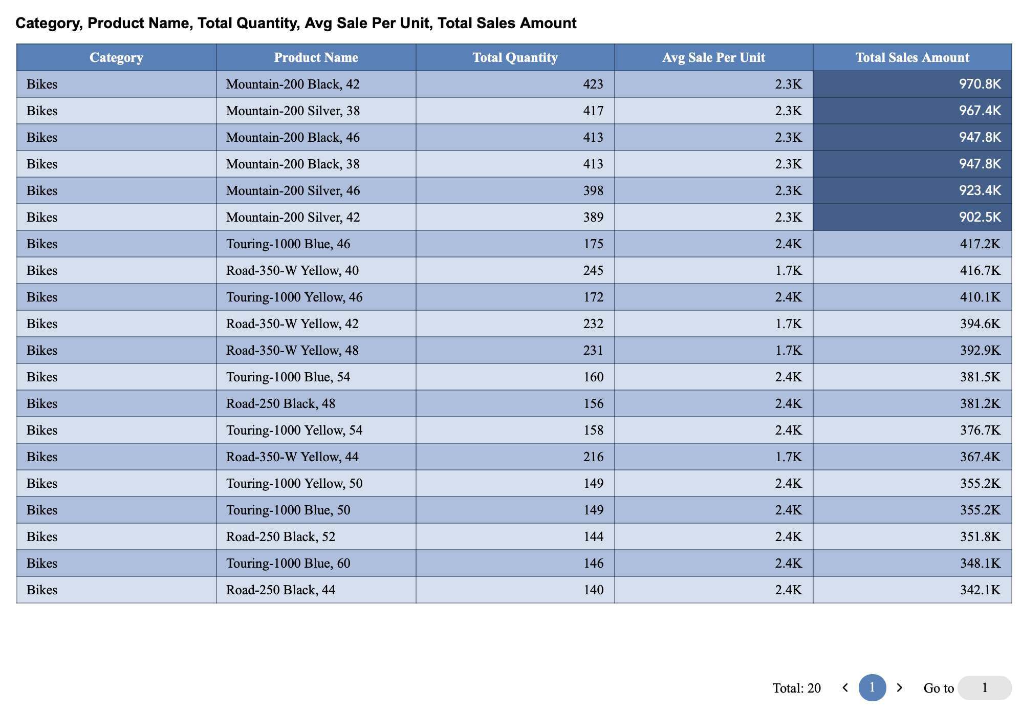 TotalSalesAmount DESC;This is the table with the conditional formatting applied: