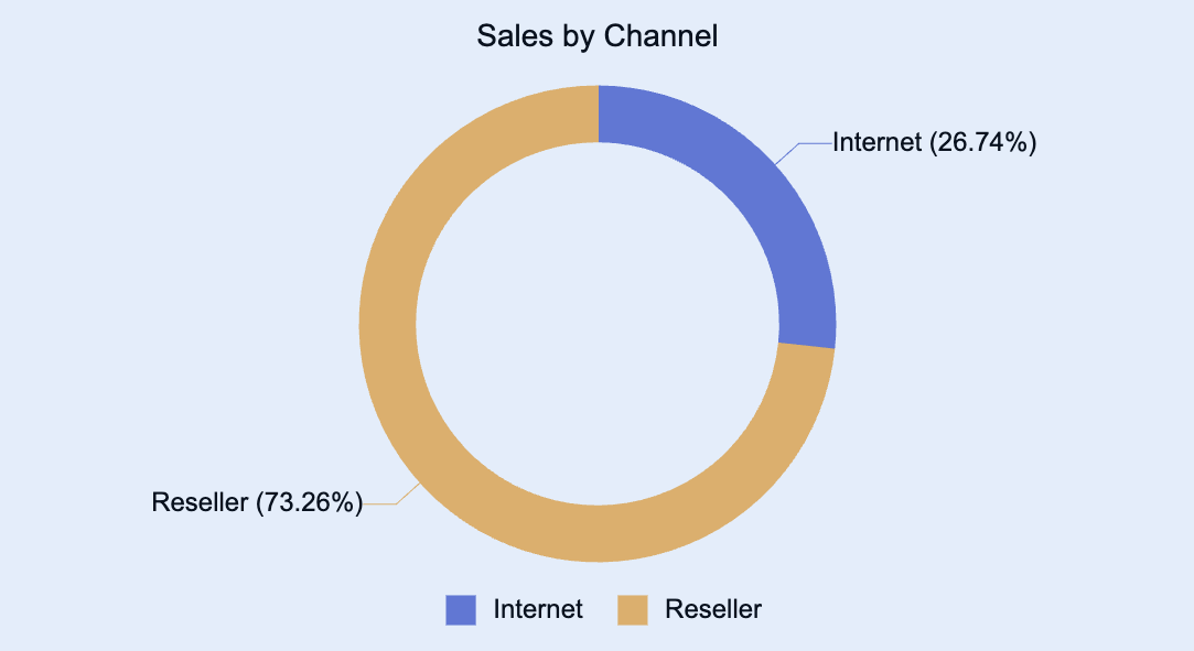 Donut charts are a visualization used to display data values as proportional segments of a circular chart with a hollow center. Each segment represents a category’s contribution to the total, while the hole in the center can be used to emphasize overall totals or highlight a key metric. The entire donut represents 100% of the data.