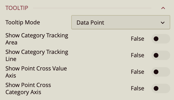 Show Category Tracking Area – Highlights the entire area of the chart that corresponds to the hovered category, helping visually connect related data points.