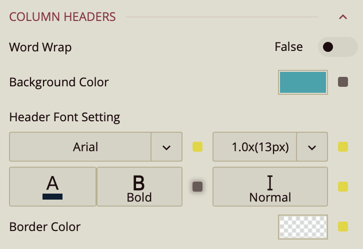 Word Wrap – Toggles wrapping of header text (False by default).