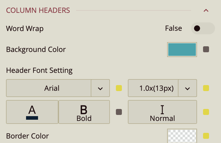 Show Column Header – Toggles the display of column headers. Enabled (True) by default.