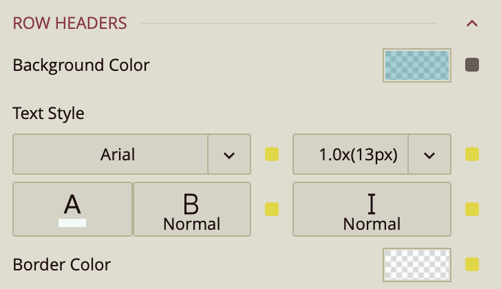Row Height – Sets the height of table rows. Enter a numeric value in pixels.