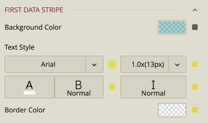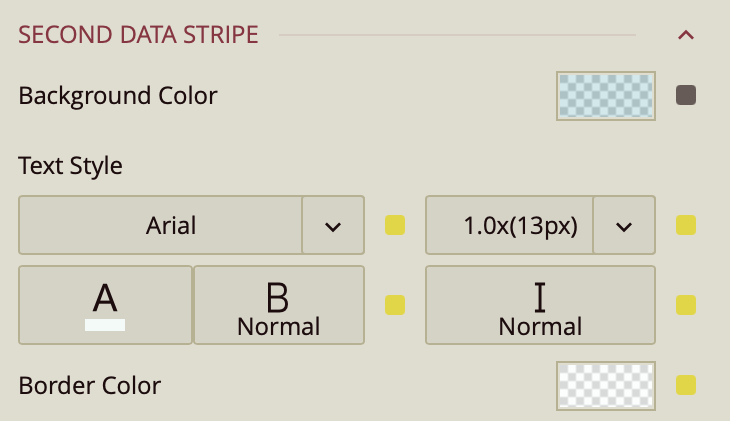 Second Data Stripe – Sets the background color, text style, and border color for alternating data rows in the second stripe pattern.