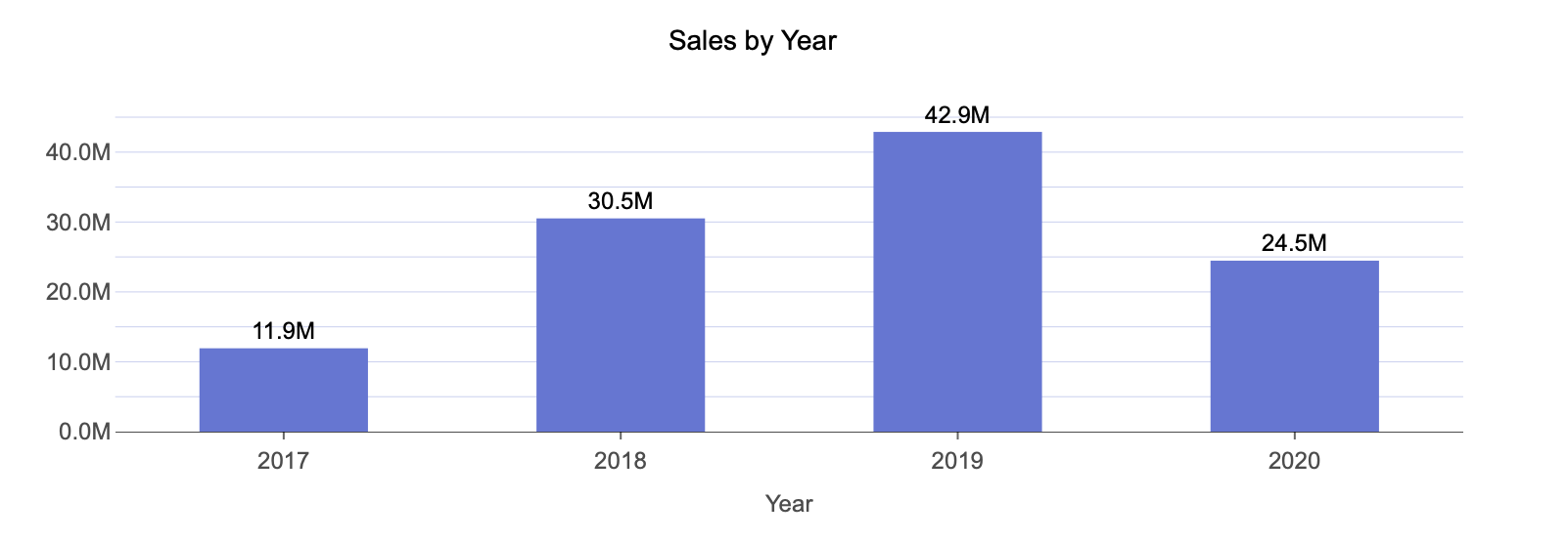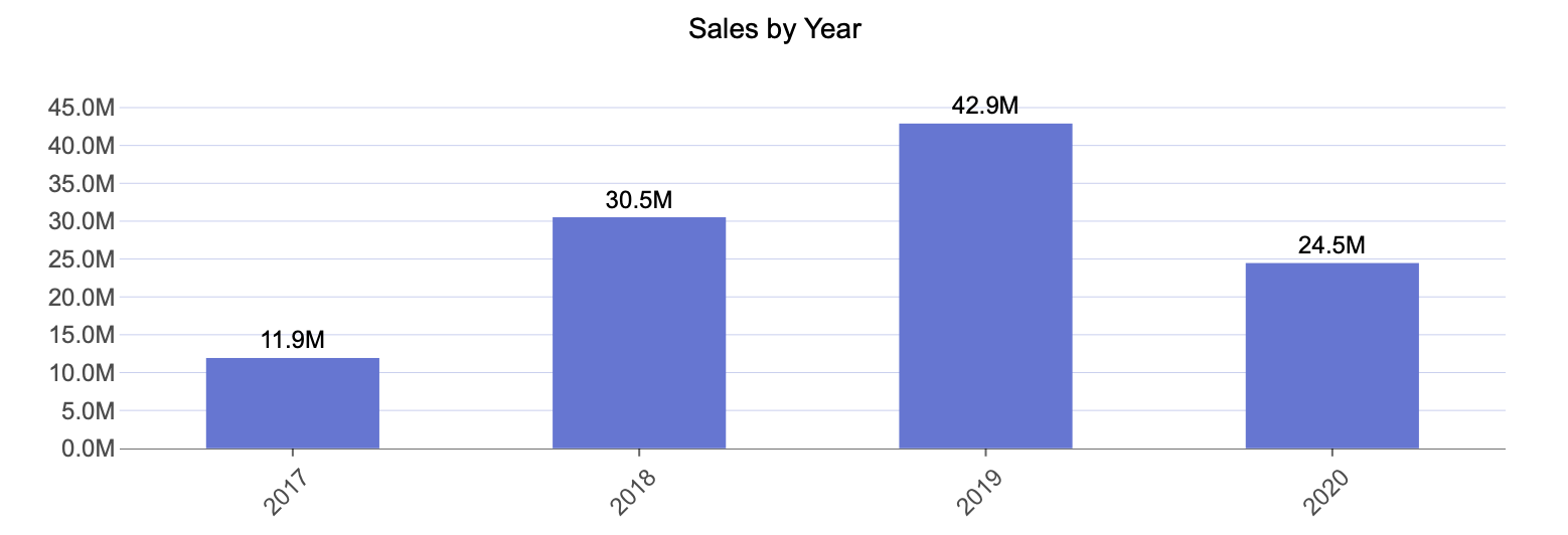 For example, if Axis Position is set to Crosses and Axis Crosses is set to 5,000,000 (5M), the category axis will intersect the value axis at five million.