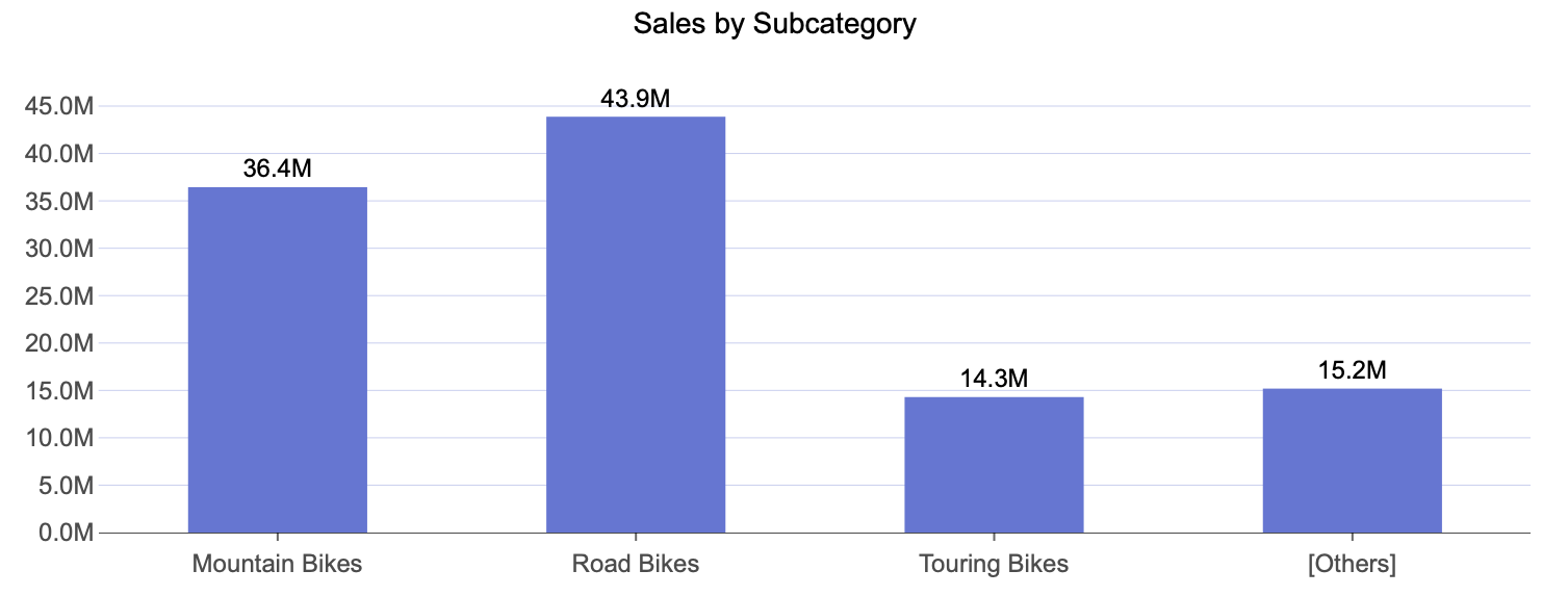 Here is an example of a column chart that displays Sales by Subcategory for the top three subcategories.