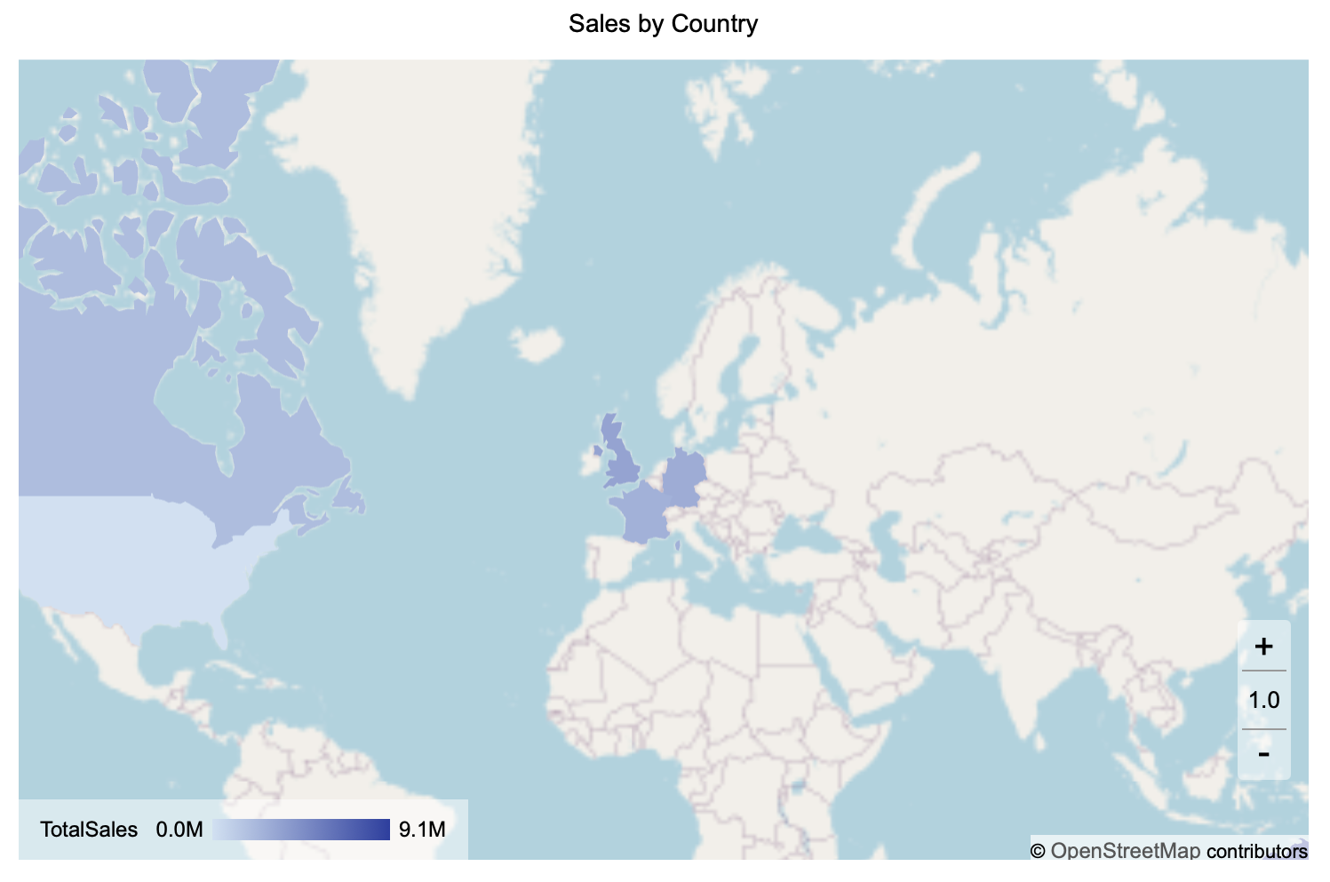 Bind a numeric measure to control how each region is shaded. Regions with higher or lower values are represented using stronger or lighter color intensity, making it easy to identify geographic patterns and trends.