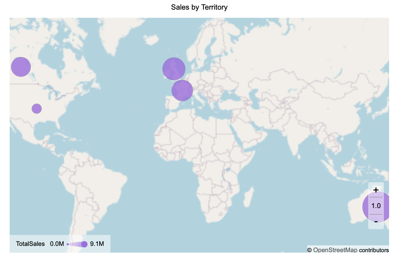 The following map has been created using this native query dataset from the AdventureWorks Data Warehouse: